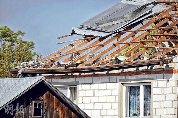 圖2之2 - 闖入波蘭空域的俄羅斯無人機遭擊落後,有碎片墜落民居,造成房屋 . . . . . . (路透社)