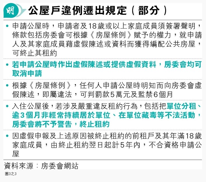 對於政策上是否一定會要求嚴重違規公屋戶遷出、何時落實上訴委員會增加醫護界代表的建議,房屋署昨日回覆本報查詢時未有正面回應。該署透露會採取兩項工作,包括上訴委員會秘書處會繼續定時安排簡報會,安排委員分享和交流處理不同個案的經驗,協助委員在聆訊時更全面和立體地審視個案的不同情况。